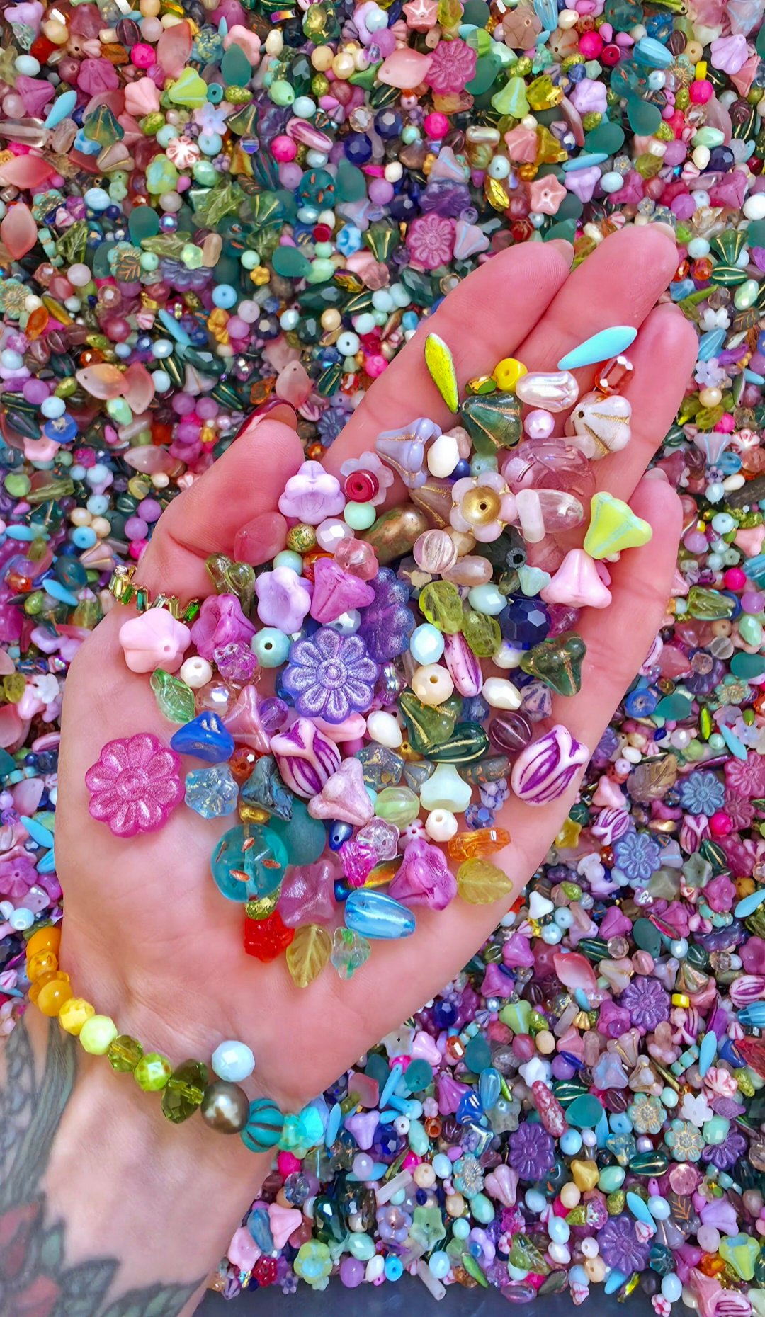 350gram bag of a beautiful variety of czech glass beads, gemstones, and more! All in different shapes and sizes.