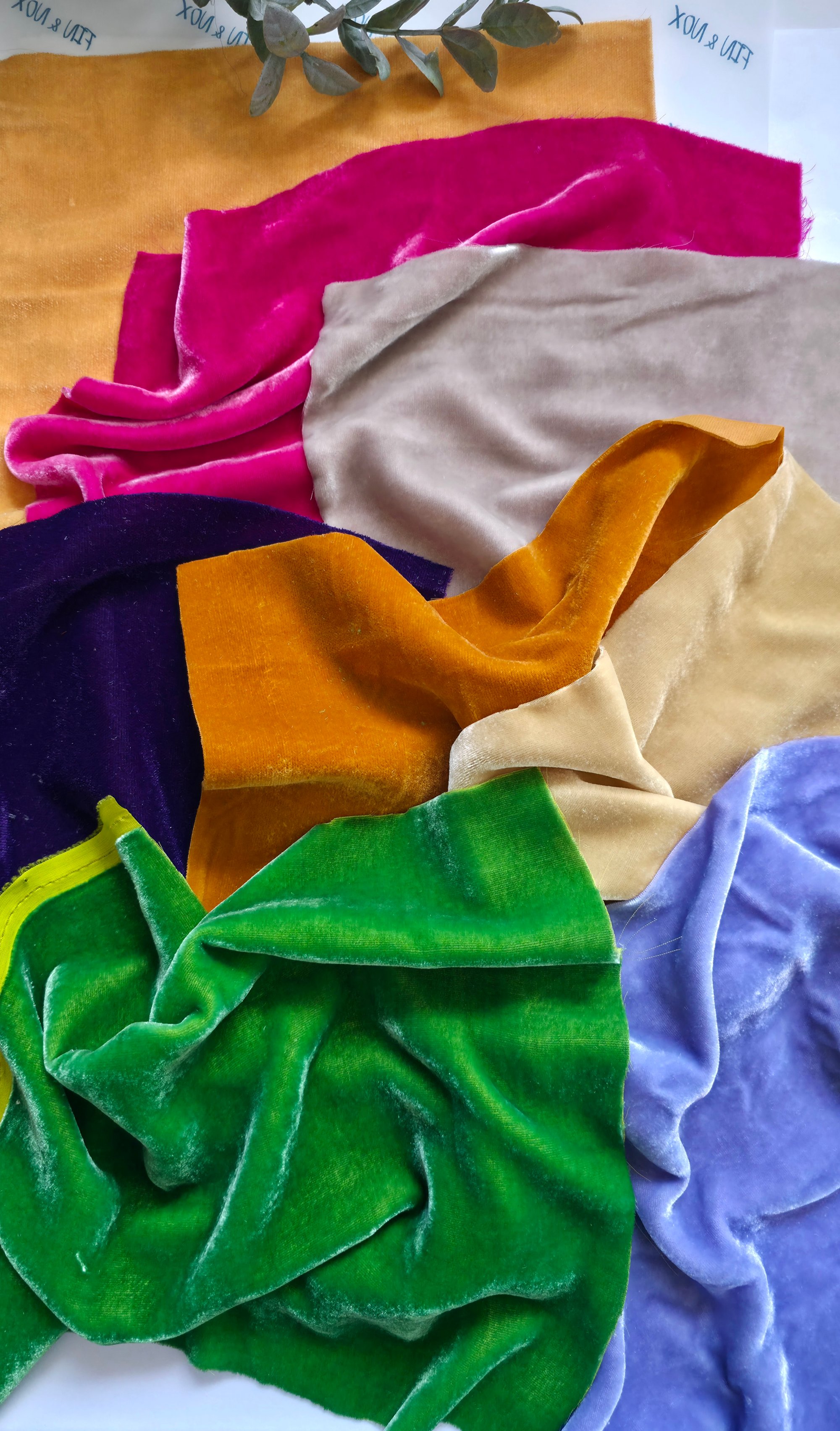 8 pieces of quality hand cut Silk Velvet fabric in 8 New colours!